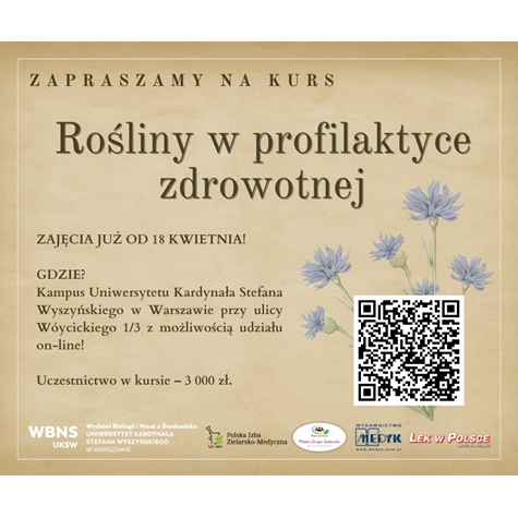 Zapraszamy na kurs „Rośliny w profilaktyce zdrowotnej – odkryj moc natury na nowo” na Uniwersytecie Kardynała Stefana Wyszyńskiego w Warszawie.